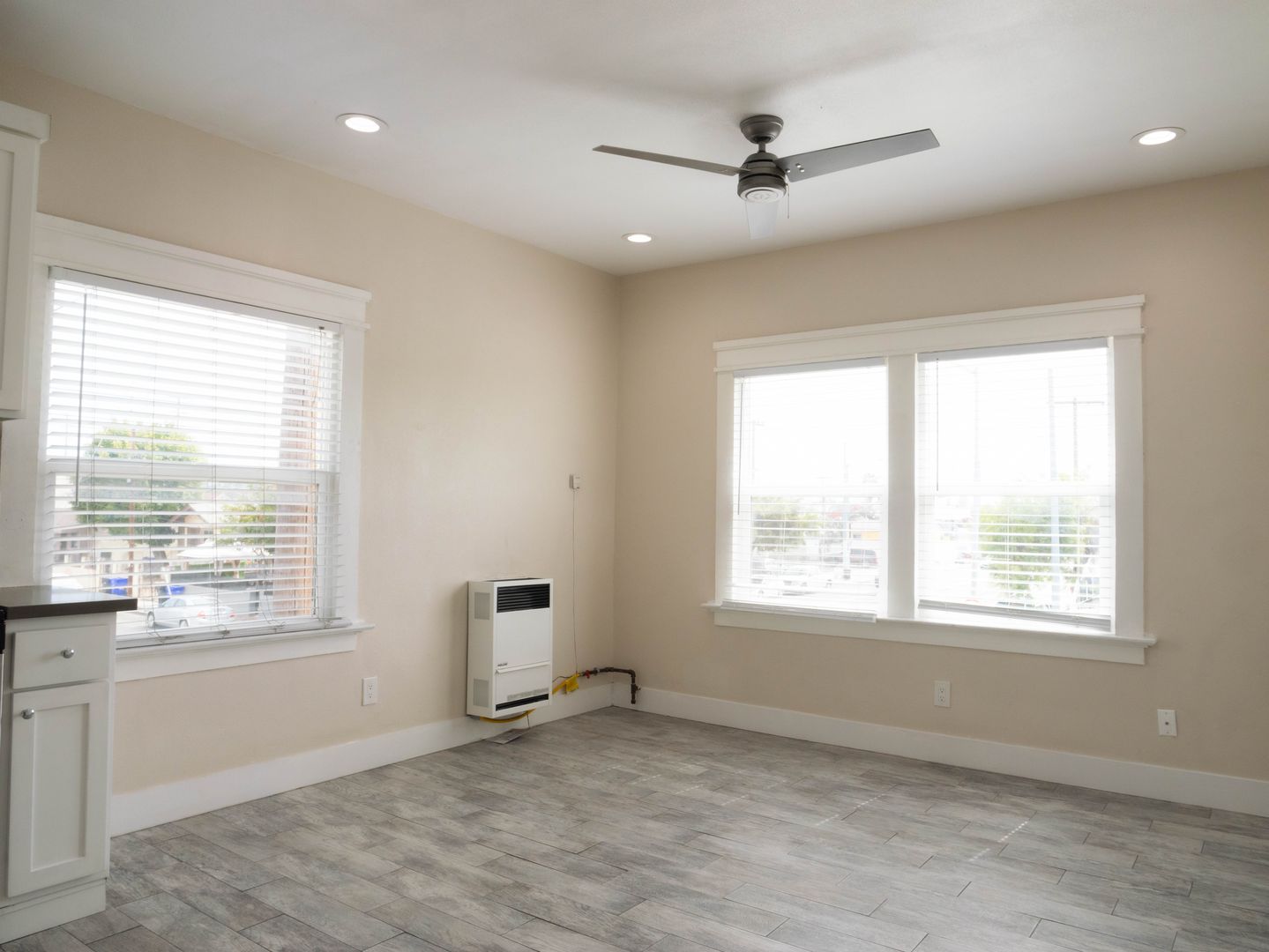 Beautiful new quartz kitchen countertops, equipped with appliances, laminated flooring, no carpet, and nice cabinets. This apartment unit is a must-see!